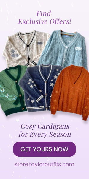 I picture Taylor wrapped in icy blues, but this time she surprised us with a vintage and colorful looks — the kind of glow that feels like fairy lights in fabric form is kinda gone this time. Now she surprises us with barrel jeans and pastel sweaters. For Swifties wanting affordable ideas, pair a beige or a yellow-blue sweater with a cat on it haha and a red polo shirt. Add a retro funny pack and suddenly you’re giving an Opalite chic.