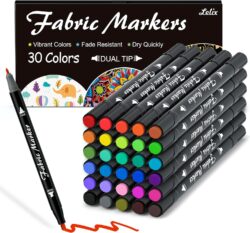 30 Permanent Colors Dual Tip Fabric Pens for Writing Painting on T-Shirts